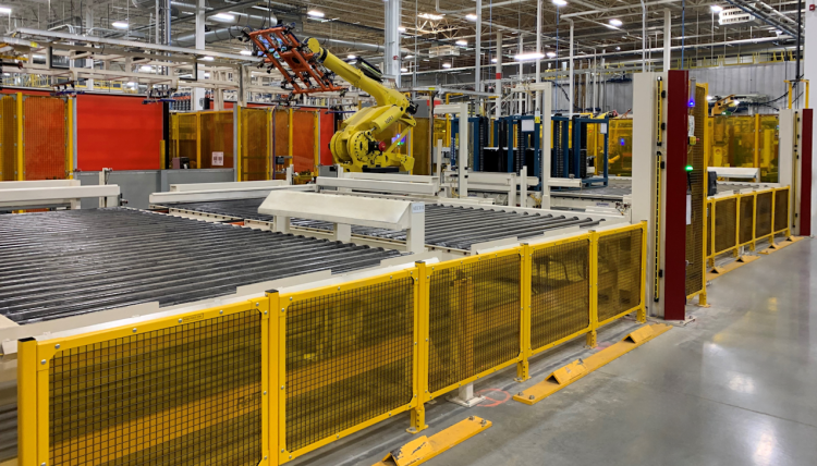 Automotive battery tray production shows full sensor integration in action. The MDR conveyor system uses sensors to control indexing, manage pop-up transfers, and coordinate removable conveyor sections through a single control network.